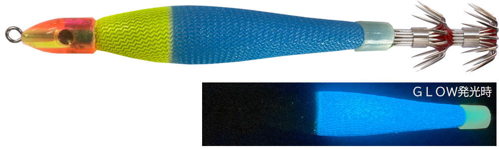 蛍光イエローとブルー夜光のW発光アピールカラー
