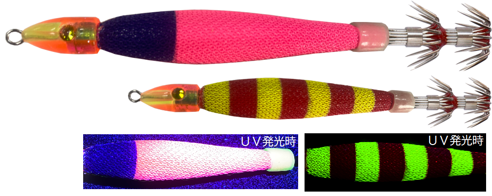 ★左右非対称カラー★UV高発色のピンク、イエローと、ブルー夜光ゼブラの蓄光で濁り攻略Wカラー