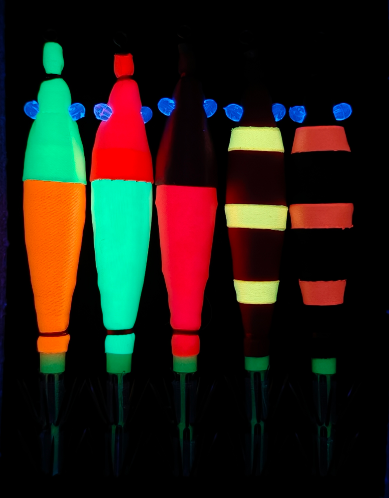 製品情報 HP浮スッテUV MIX for Angler PICK UP 2026 New 浮スッテシリーズに視認性の優れる蛍光発色布を採用した5本入アソートカラーが新登場。 高発光のUVアイがターゲットの捕食位置を認識にさせ、綿入ボディのソフトな質感がしっかりフッキングに持ち込みます。 紫外線発光イメージ スペック表 JANコード カラー サイズ 入数(本) 本体価格(税別) 4519063245021 UV MIX 2.5 5 ¥1,930 4519063245007 UV MIX 3.0 5 ¥1,970 4519063245014 UV MIX 4.0 5 ¥2,030